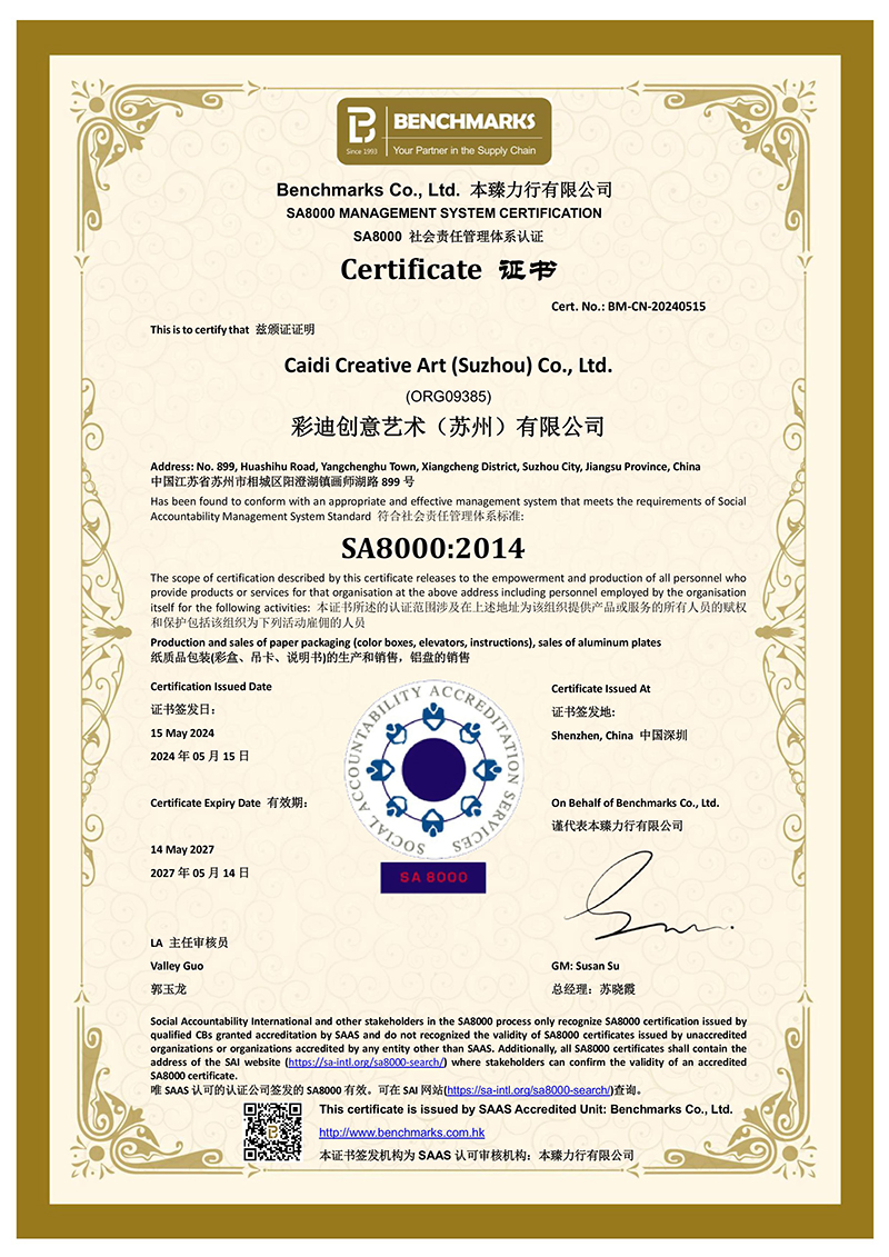 SA8000 Certificate_Caidi Creative Art (Suzhou) Co.,LTD.